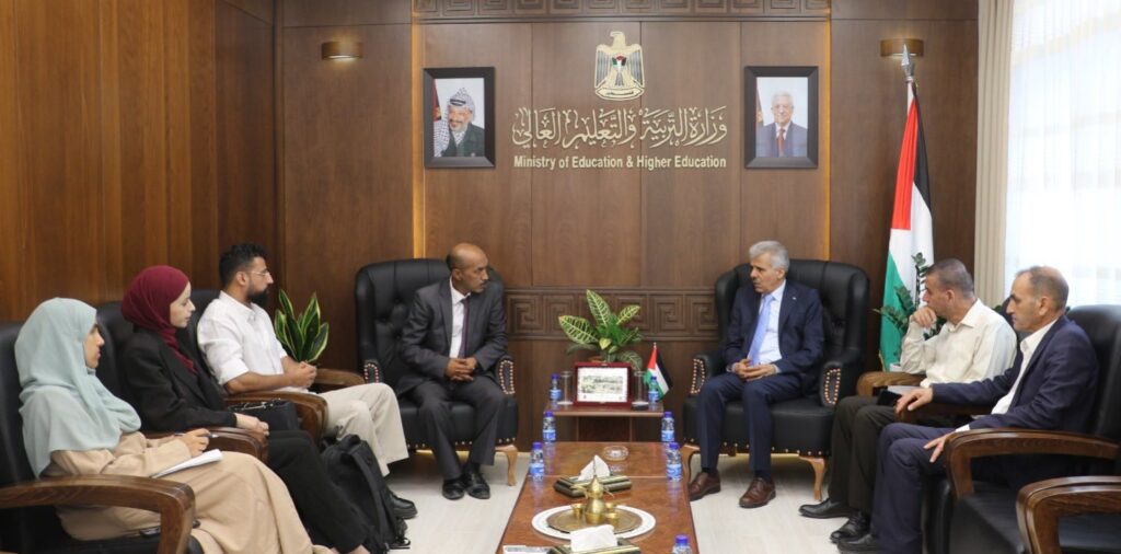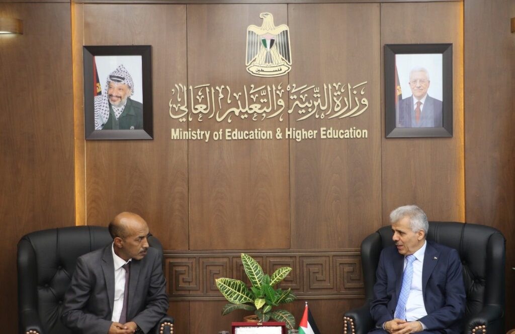 The Minister of Education and Higher Education, Prof. Amjad Barham, met on Thursday with Hassan Mleihat, General Supervisor of Albaidar Association for the Defense of Bedouin Rights in Palestine, to discuss avenues for joint cooperation to protect the right to education in Bedouin and remote areas, amid ongoing violations by the occupation and repeated settler attacks targeting these communities.